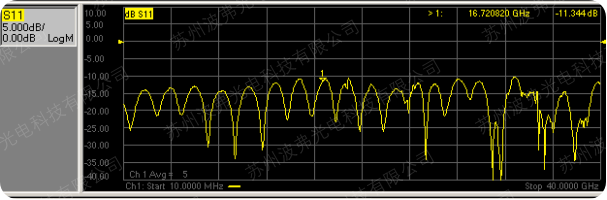 S11是电回损,定义为射频电信号从调制器RF端口反射会信号源的比例(dB表示)。S21定义为注入调制器射频端口的电信号-3dB高频截至带宽。调制器的RF射频端的高频效率通常由电回损和电光带宽决定,用高速仪器比如光电探测器和矢量网络分析仪可测量出这些参数。强度调制器需要设置在正确的直流偏压点,并且输入射频弱信号(S11一般0dBm数量级,S21一般-15dBm数量级),S11需要记录它在整个频率段的最大数值,S21测量时网络分析仪和高速光探测器需要被校准和去嵌,以确保测量出的电光带宽仅仅是调制器本身的。