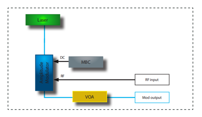 • 调制器偏置控制器:内部LiNbo3调制器是具有非常低漂移的X-切设计器件。然而,无论环境条件如何,都提供了一个自动偏置控制电路来将调制器的工作点锁定在正交点。MBC确保了随时间的稳定操作,并显示出非常低的噪声灵敏度,从而显著降低了所需的抖动电压幅度。
