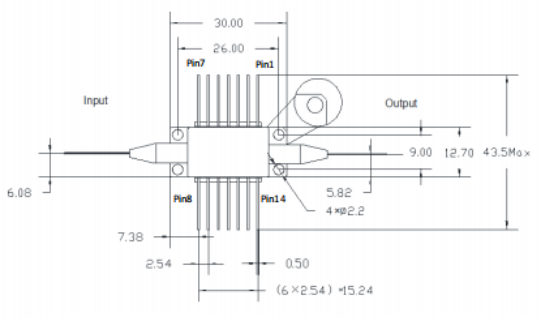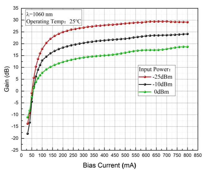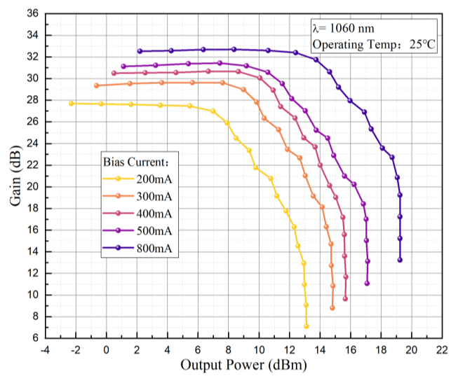 1060nm波段-15dBm饱和输出功率-25dB增益-蝶形封装-单模光纤-FC/APC接头 |