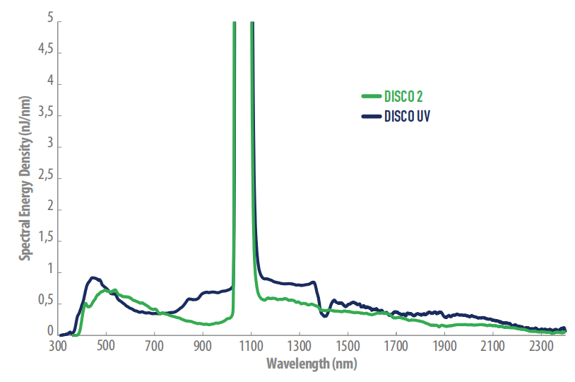 DISCO的光谱范围低至紫外线,具有出色的使用寿命。DISCO是时间分辨光谱实验中探测光产生的理想替代品。